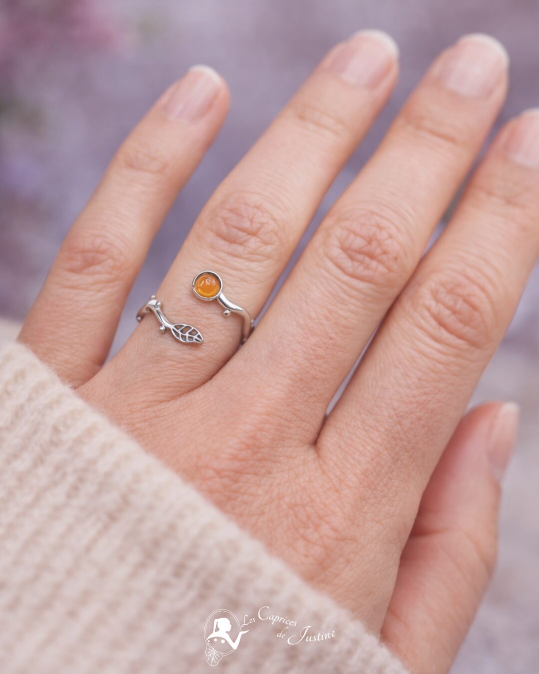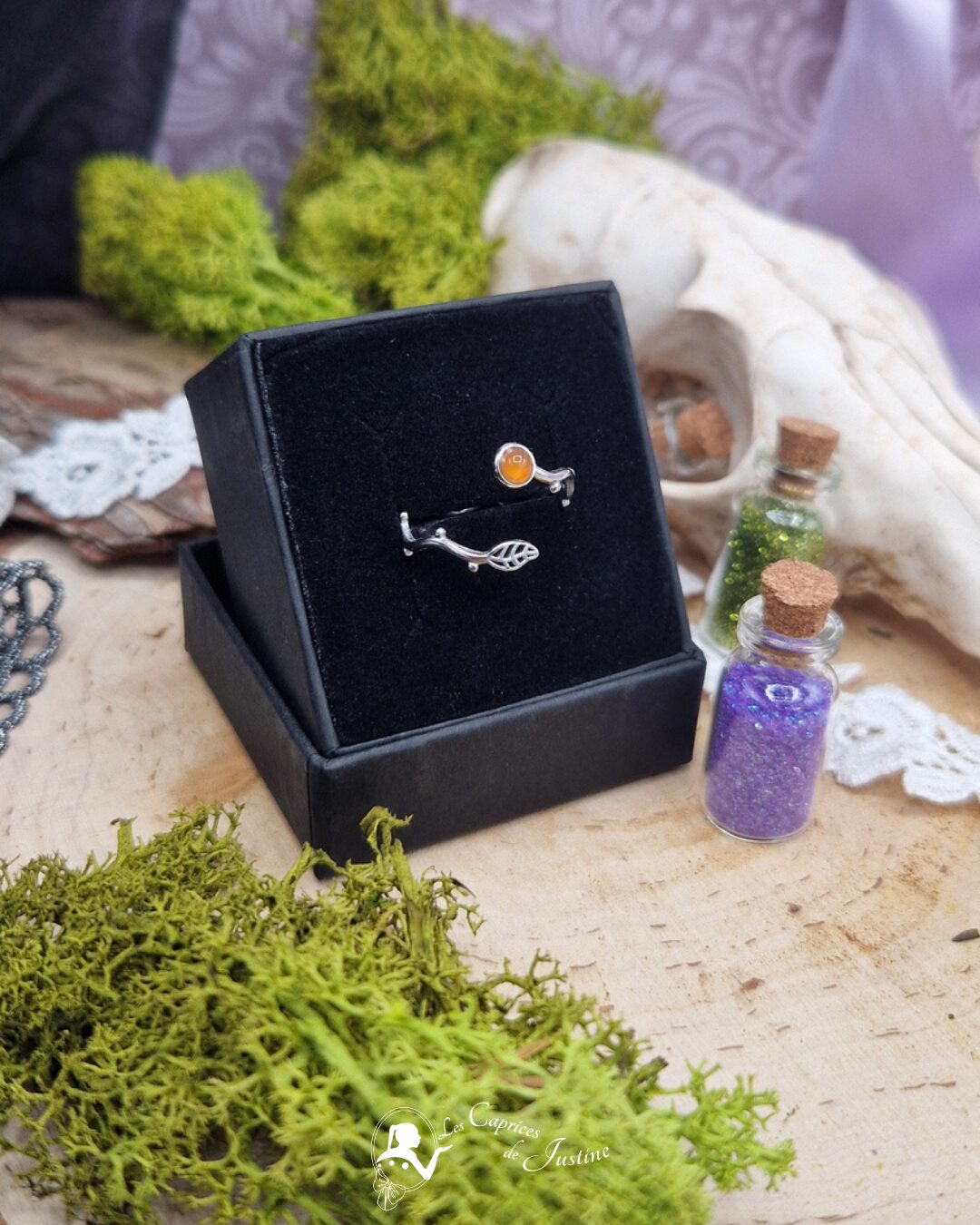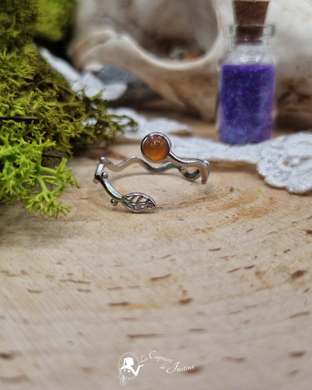 Bague de la Sylve Veilleuse – Cornaline et acier inoxydable doré ou argenté